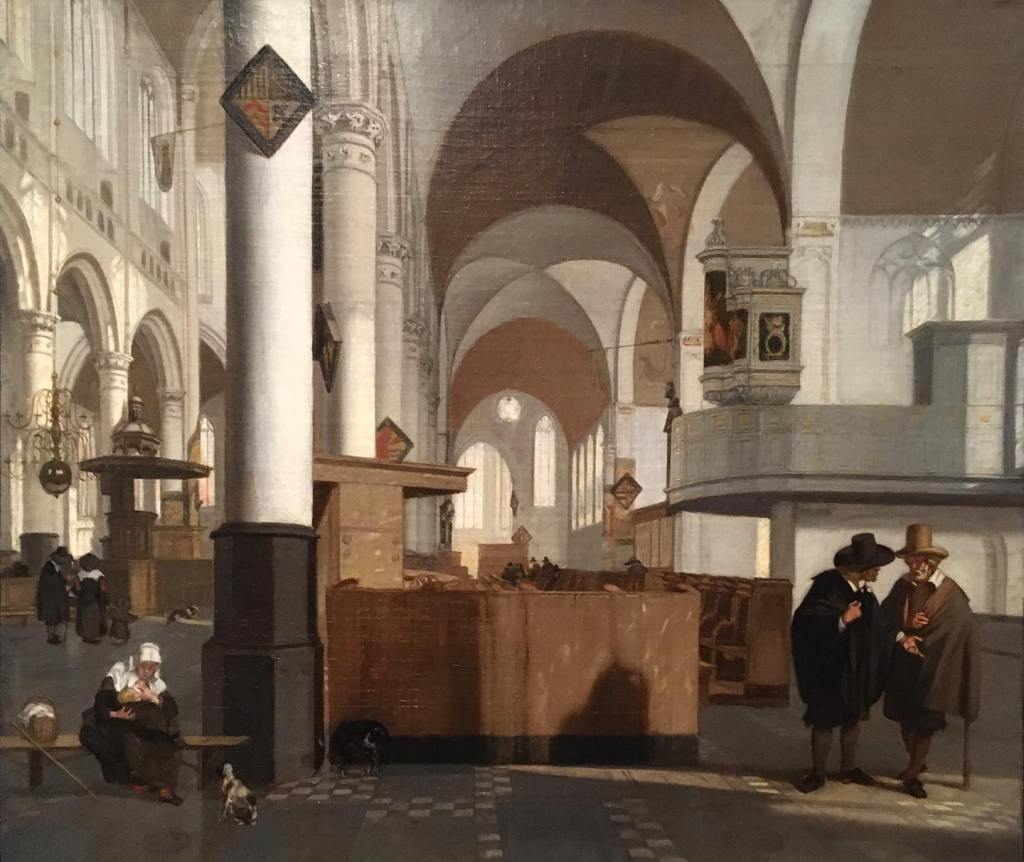 13 Dec. Art Advent #12. Last week, I posted the work Anastasis, installed over the summer in the Oude Kerk in Amsterdam. This is a 1659 representation of the Oude Kerk, although not entirely truthful. Emanuel de Witte, a renowned expert in painting church interiors, was not afraid to move around architectural elements if it benefitted his composition. De Witte depicts his churches often outside of official services. People are scattered throughout the building, talking. Dogs wander around. And, often, women are portrayed breastfeeding their babies. Yes, in 1659 that was no big deal in church.