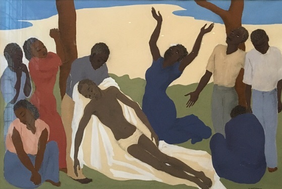 15 Dec. Art Advent #14. Nola Hatterman’s father worked in the coffee trade, which she thoroughly experienced as a colonial milieu. This made her rebel, as she could not understand why people in colonies were regarded as any less. Her paintings feature black models, generally not depicted in historical or exotic scenes – but as inhabitants of modern life. This Pieta has a different character, but is of equally emancipatory nature. In 1953, Hatterman moved from The Netherlands to Suriname. She became director of the art academy, and was convinced once her students moved to TheNetherlands they would be ruined. She was a big proponent of a national and independent Surinamese art.