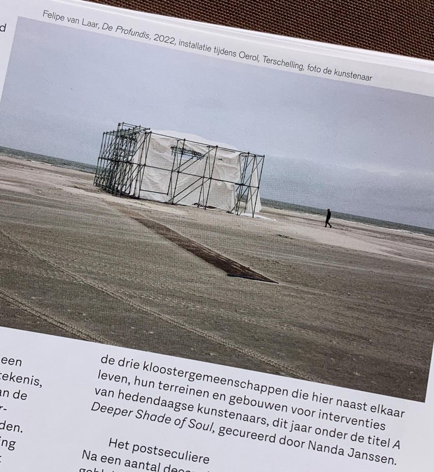 Voor dit artikel sprak ik met Felipe van Laar over zijn sacrale architectonische installaties en Kenneth Aidoo deelde met mij hoe zijn geloof in zijn werk en leven aanwezig is. Daar ben ik beiden zeer dankbaar voor. Ook komen o.a. de h3h Biënnale in Oosterhout en de tentoonstelling OMG. Reli Popart in Museum Krona voorbij.