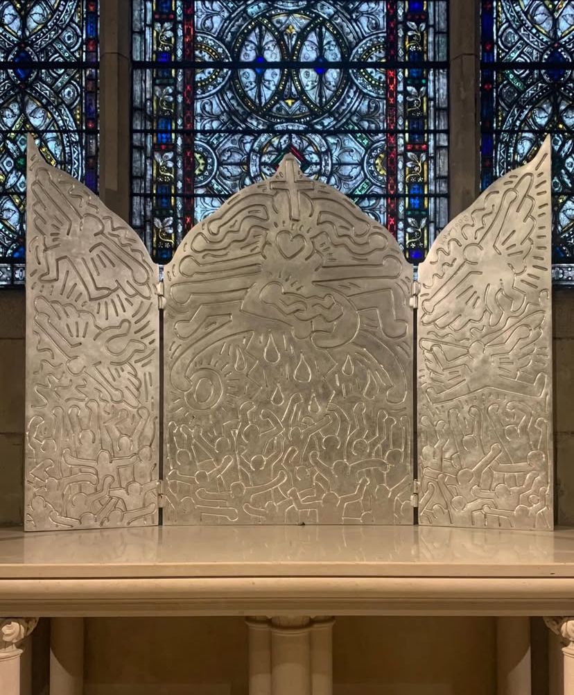 Today is second Advent Sunday. In one of the side chapels in the majestic St. John the Divine Cathedral in New York, stands this intriguing triptych: depicting The Life of Christ by Keith Haring. With side panels depicting angels flying or falling from the sky, the heart of the triptych focuses on Christ being held by Mary and the mourning of his death. Haring made this sculptural work in 1990, the last one before he passed away. I love the simplicity of the visual language, so distinctly and singularly Haring, which at the same time depicts the universal subject matter of eternal love and loss.