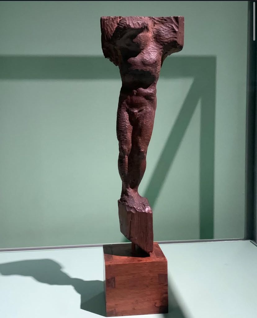While the Michelangelo exhibition at Teyler’s mostly focused on his drawings and sketches, this small sculpture attributed to the master caught my eye. The missing arms of the body are mirrored in the missing arms of the cross – this sculpture undeniably represents a crucified Christ. Just like the sketches in relation to his paintings, this small object is a study for a larger sculptural project. But somehow, this small jewel of an object is perfect in and of itself.